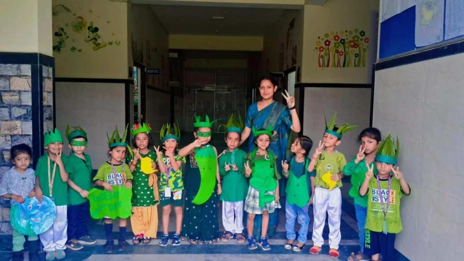 Green buildings, solar energy, rainwater harvesting, and recycling practices build awareness.